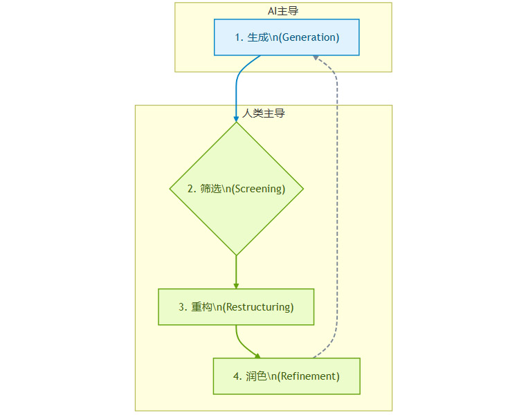 一个典型的人机共创工作流可以被建模为一个四阶段的迭代闭环。