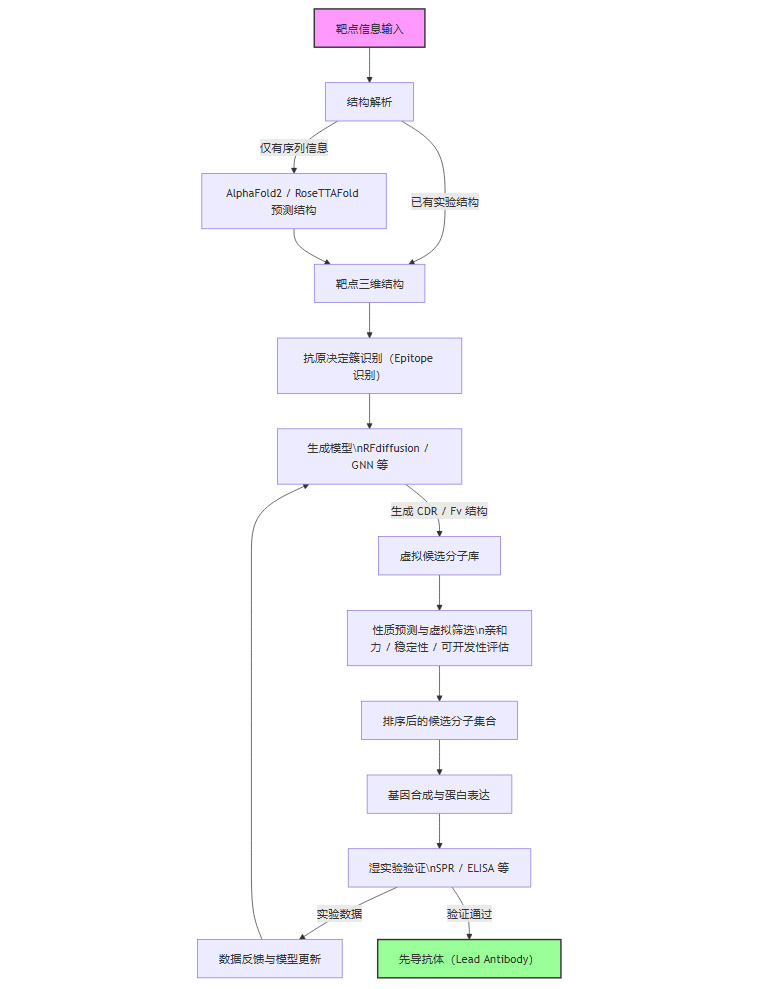 一个典型的AI抗体设计流程可以由下面的Mermaid图表示。