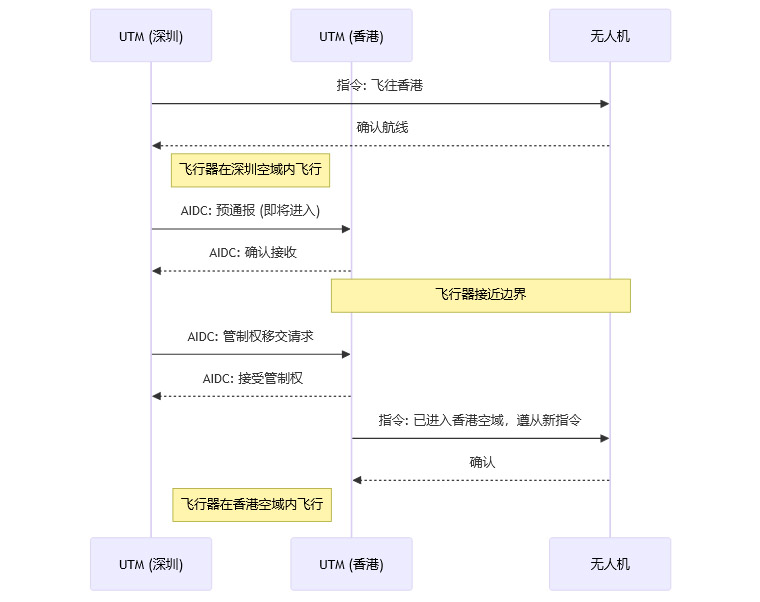 问题:一架从深圳飞往香港的无人机,其空域管辖权、通信频率、飞行规则在跨越边界的瞬间就会发生变化。如何实现无缝、安全的“交管”切换?
