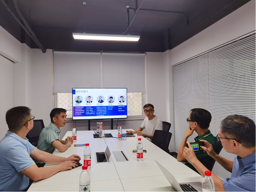 广东省电脑商会马会长率团队走访广州运通链达金服科技有限公司,人员包括:马本湘-广东省电脑商会会长,南软创始人;高强-南软科创运营总监;彭实-南软科创技术专家;潘美霖-广东省电脑商会会长助理。双方就区块链和大模型技术展开交流,并探讨市场应用为企业赋能的重要性。