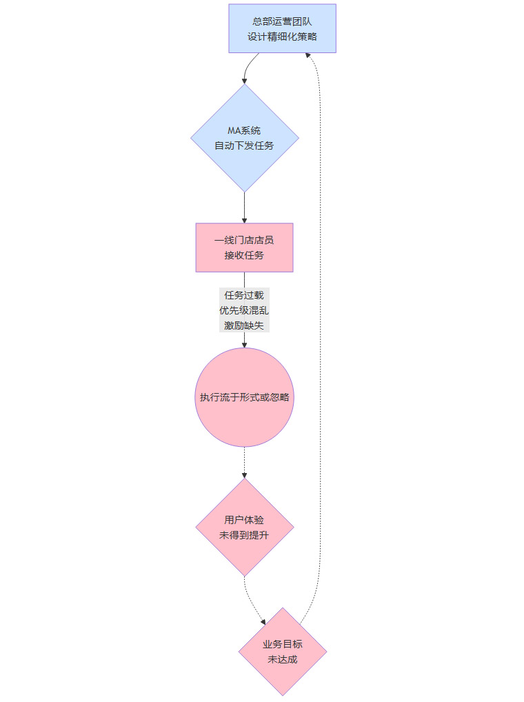 但一线店员的反馈普遍消极。他们每天要应对商品上架、盘点库存、接待顾客、处理售后等大量繁杂事务。在他们看来,执行MA系统下发的“软性”营销任务,优先级低,且效果无法立即显现。即使有考核压力,他们也更倾向于完成那些“硬性”的销售指标,而对系统任务则流于形式,甚至想办法“刷数据”应付了事。