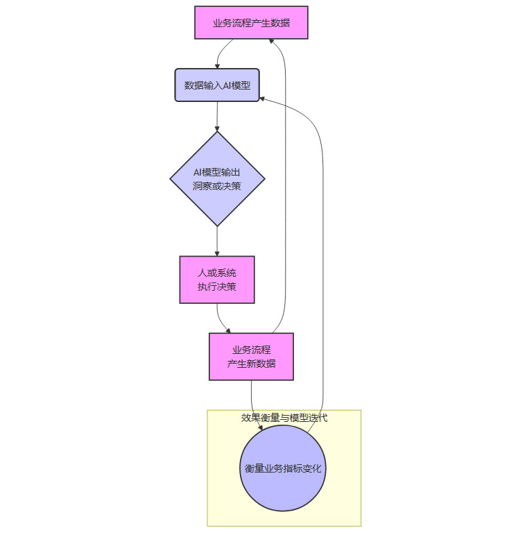 AI项目不是一次性的交付,而是一个持续优化的生命周期。需要设计一个完整的数据和业务闭环。