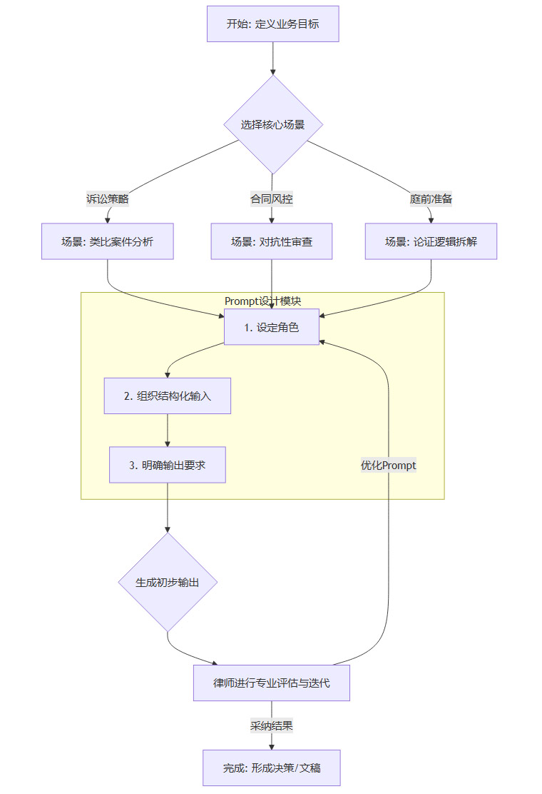 我们必须停止将AI视为一个无所不知的“神谕”或一个廉价的“实习生”,而是学会将其作为一个可被精确控制的思维模拟器和认知陪练。这要求律师掌握高阶Prompt工程的方法论,能够通过“场景、角色、结构化输入”的设计,将自己的专业经验和办案智慧,转化为AI可以理解并执行的指令。