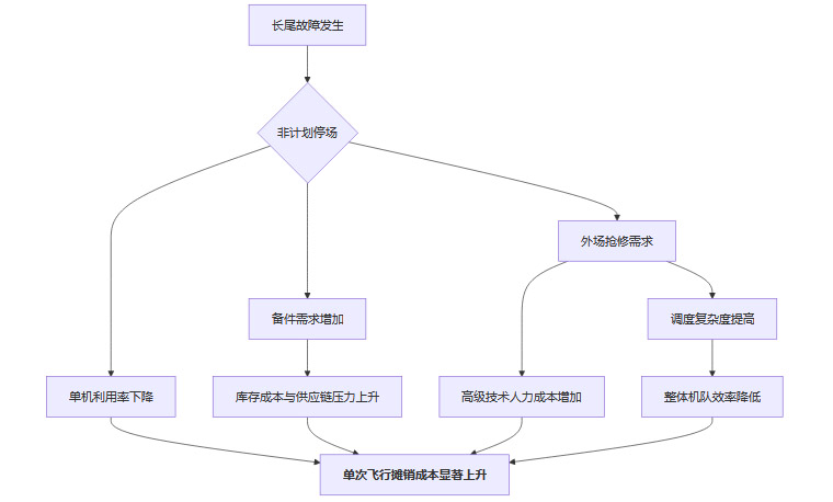 每一个长尾故障,都会像投入平静湖面的石子,激起一连串的运营涟漪,最终将“小数点后”的可靠性问题,放大为单次飞行账本上清晰可见的成本。